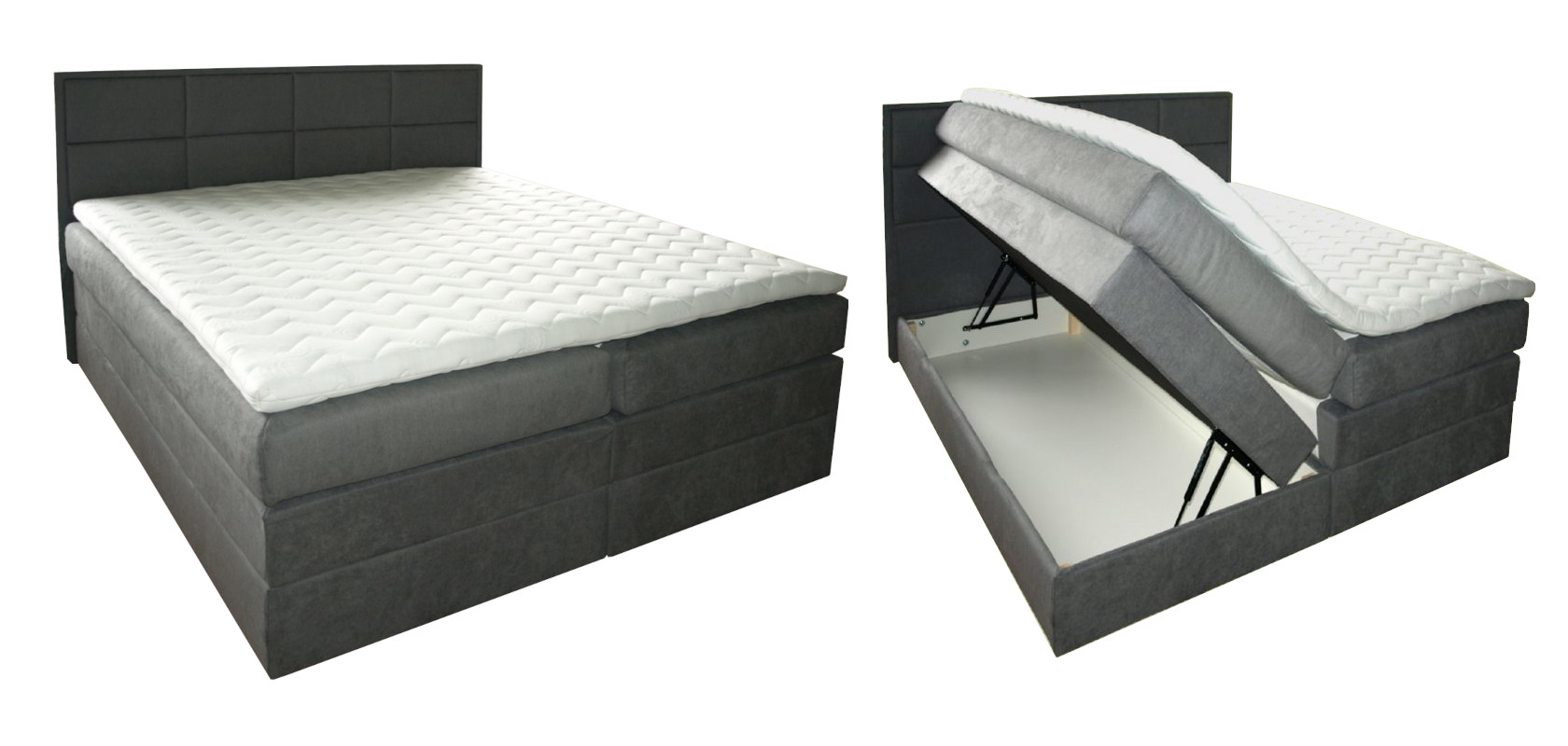 Ako trebate dodatni prostor za ostavu, ovaj krevet sa "boxspring" postoljem visine 42 cm i otvaranjem sanduka po sistemu leptira pravi je izbor za Vas. Sa odličnim madracem PocketPlus sa džepićastom jezgrom debljine od 20 cm i nadmadracem SoftyAloe od pjene debljine 6 cm sa navlakom od Aloe Vera vlakana. Elegantno dekorirano uzglavlje uljepšati će izgled svake spavaće sobe. Kao i za naš ostali tapecirani namještaj, sami birate boju i materijal izrade Vašeg kreveta.